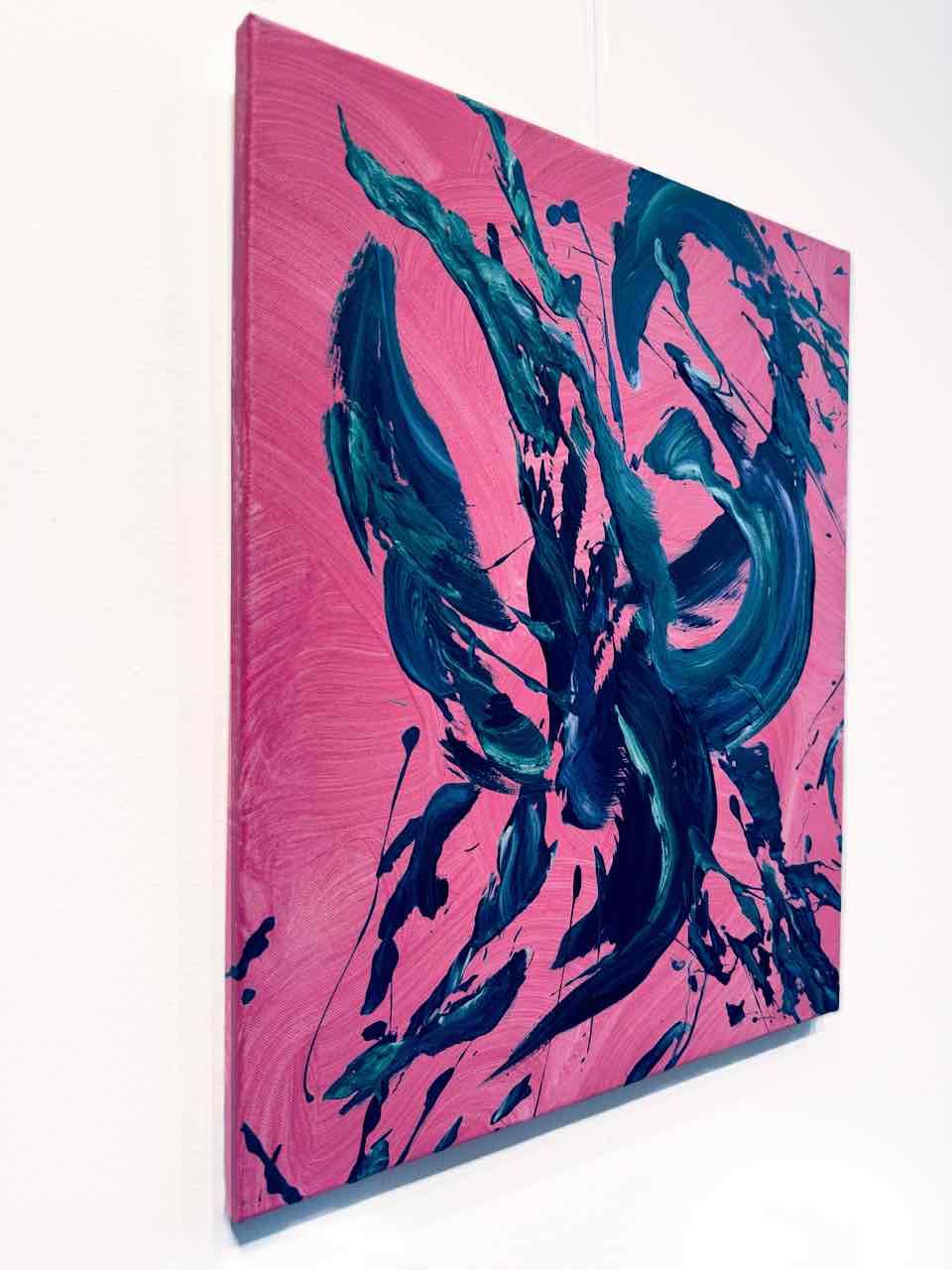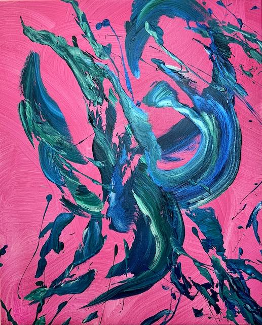 In diesem lebendigen Acrylgemälde spiegelt sich die Schönheit von Bewegung und Emotion wider. Der Tanz der Farben auf der Leinwand – kräftiges Pink, tiefes Blau und Grün – verkörpert den Wunsch nach Freiheit und Ausdruck. Diese energetische Abstraktion vermittelt eine positive Stimmung und lässt die Gefühle fließen. Das Kunstwerk bringt Leben und Energie in jeden Raum und hat das Potenzial, Ruhe und Zuversicht auf den Betrachter zu übertragen.