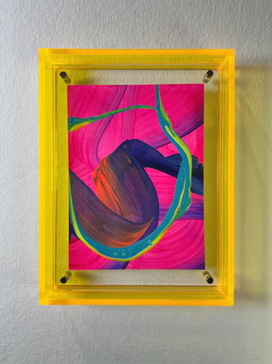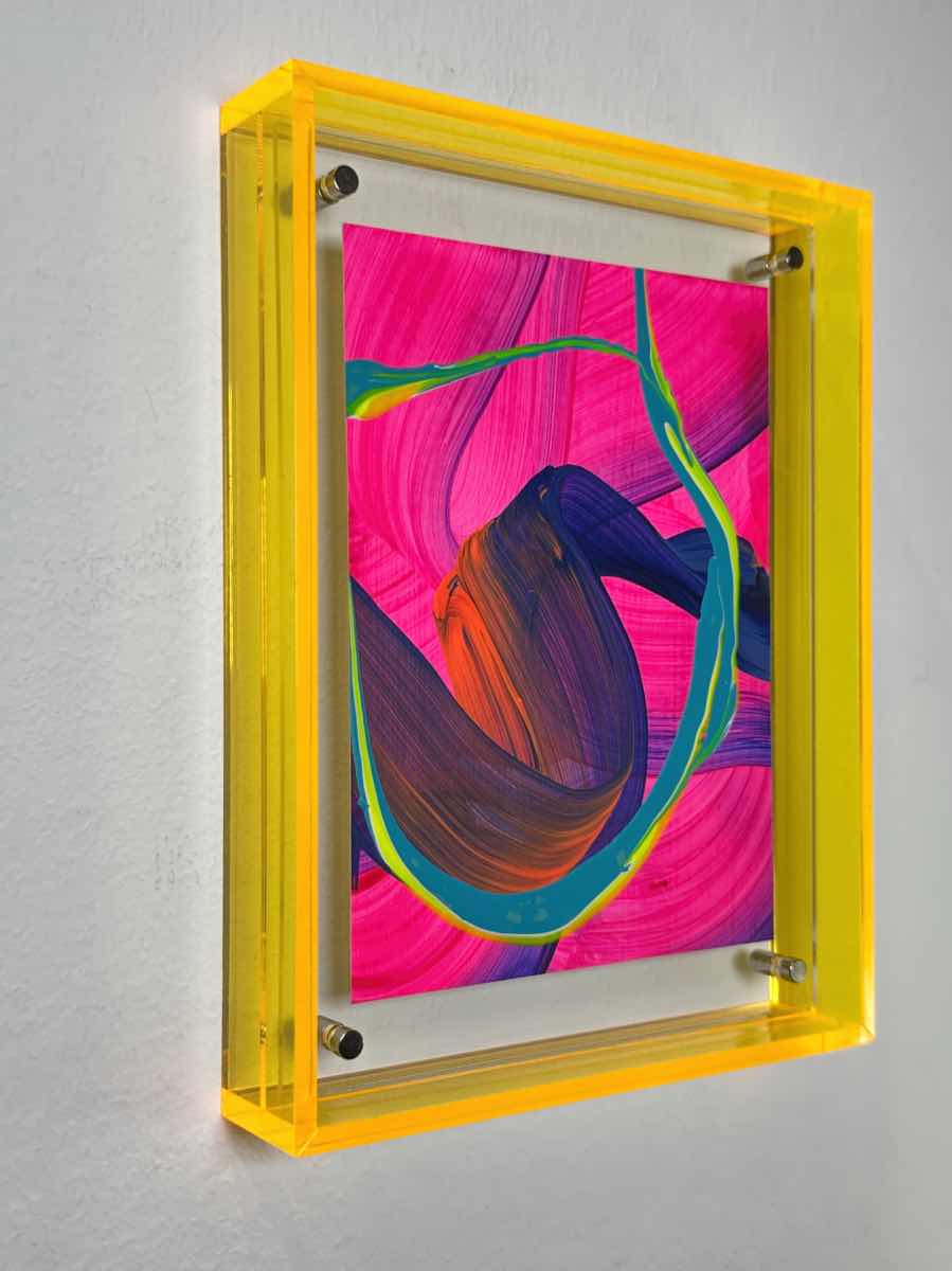 Acryl auf Papier in Acrylrahmen Gelb / Blau / Pink