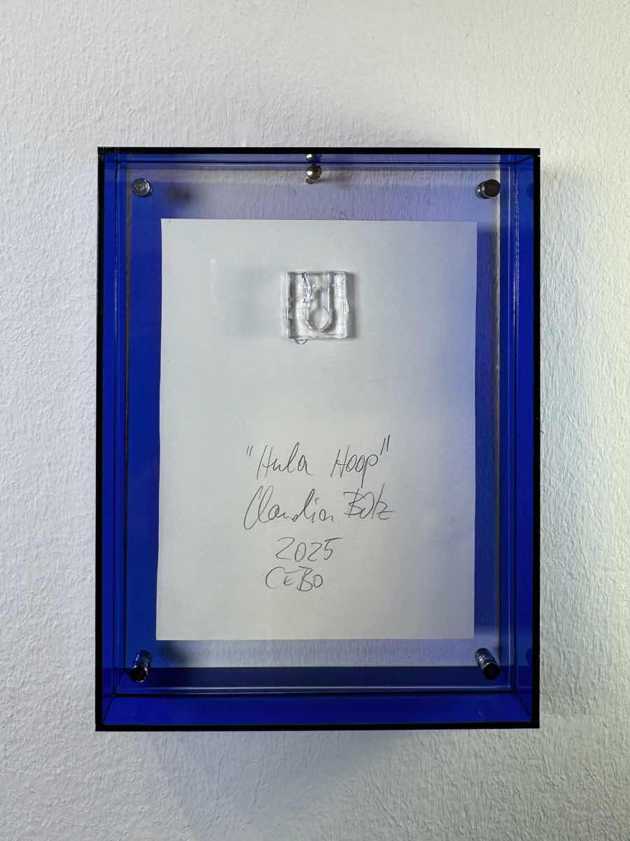 Traumhafte Mini Kunst in leuchtenden Farben: „Hula Hoop“ ein energetisierendes kleines Kunstwerk – abstrakte Form trifft auf leuchtende neon Farbe.  Dynamische, fliessende Bewegungen fügen sich zu einem energiegeladenen und fesselnden Blickfang. Der blaue Rahmen aus  Acrylglas unterstreicht  das intensive Farbspiel und lässt das Werk regelrecht an der Wand leuchten.