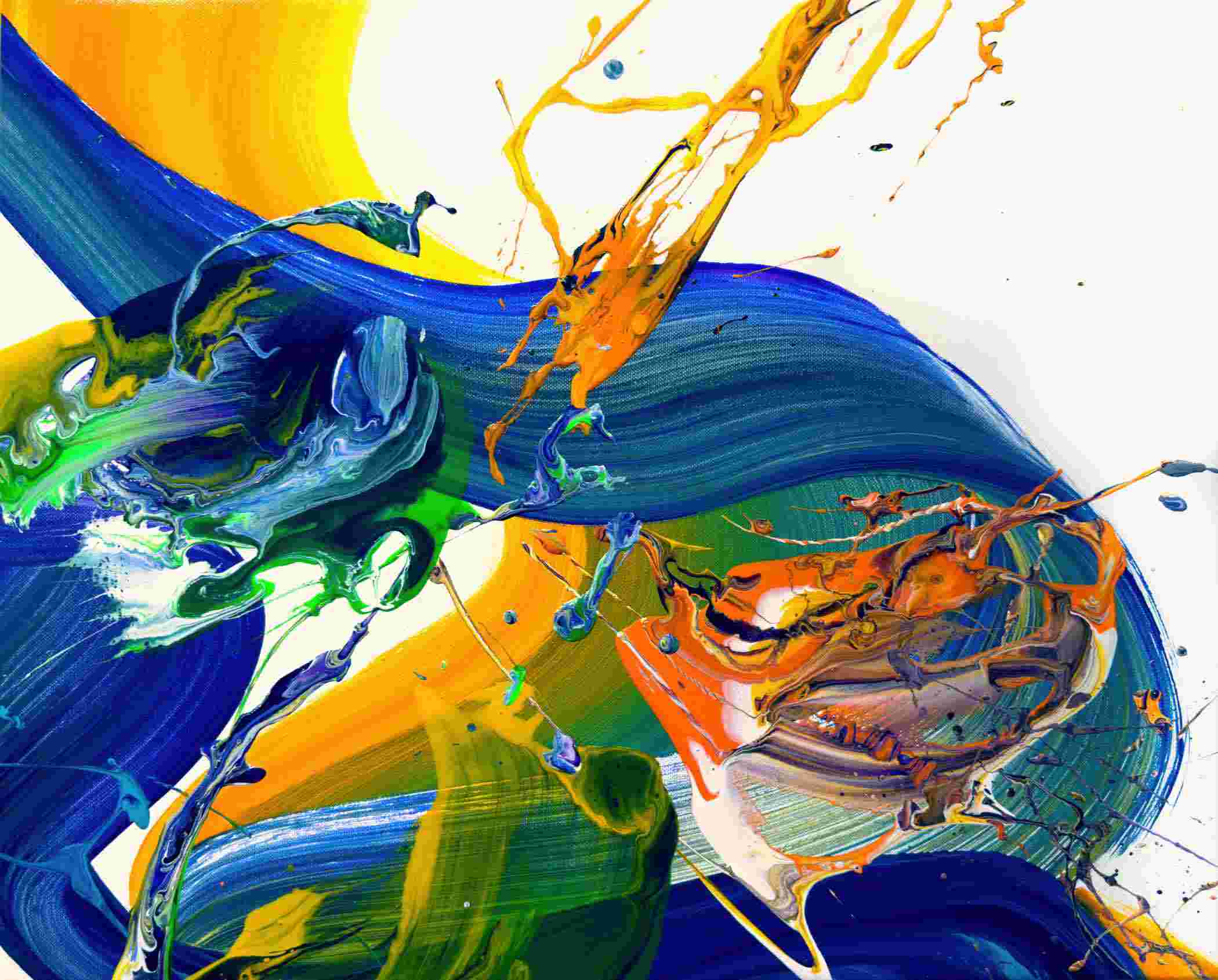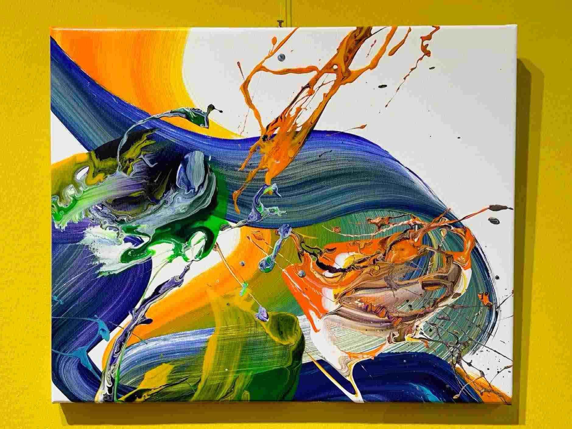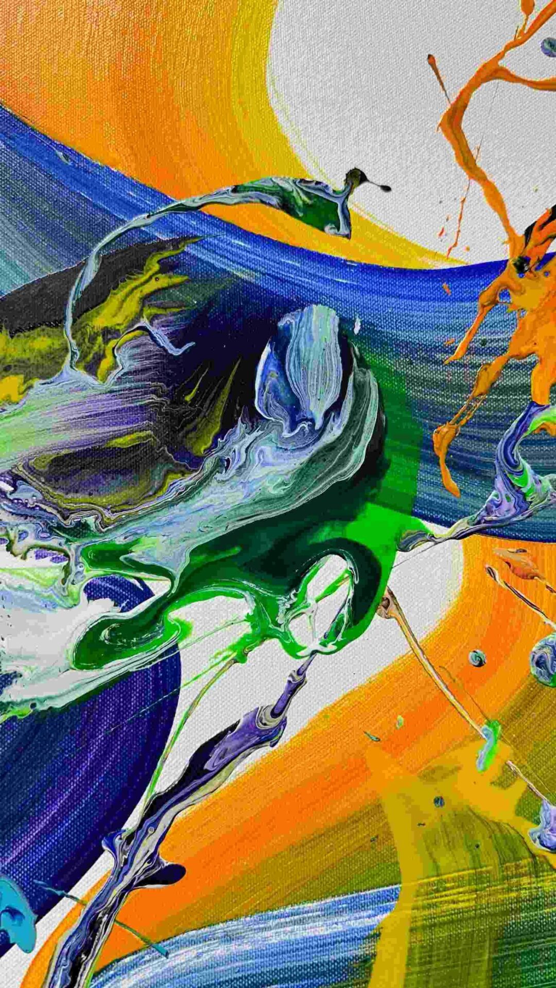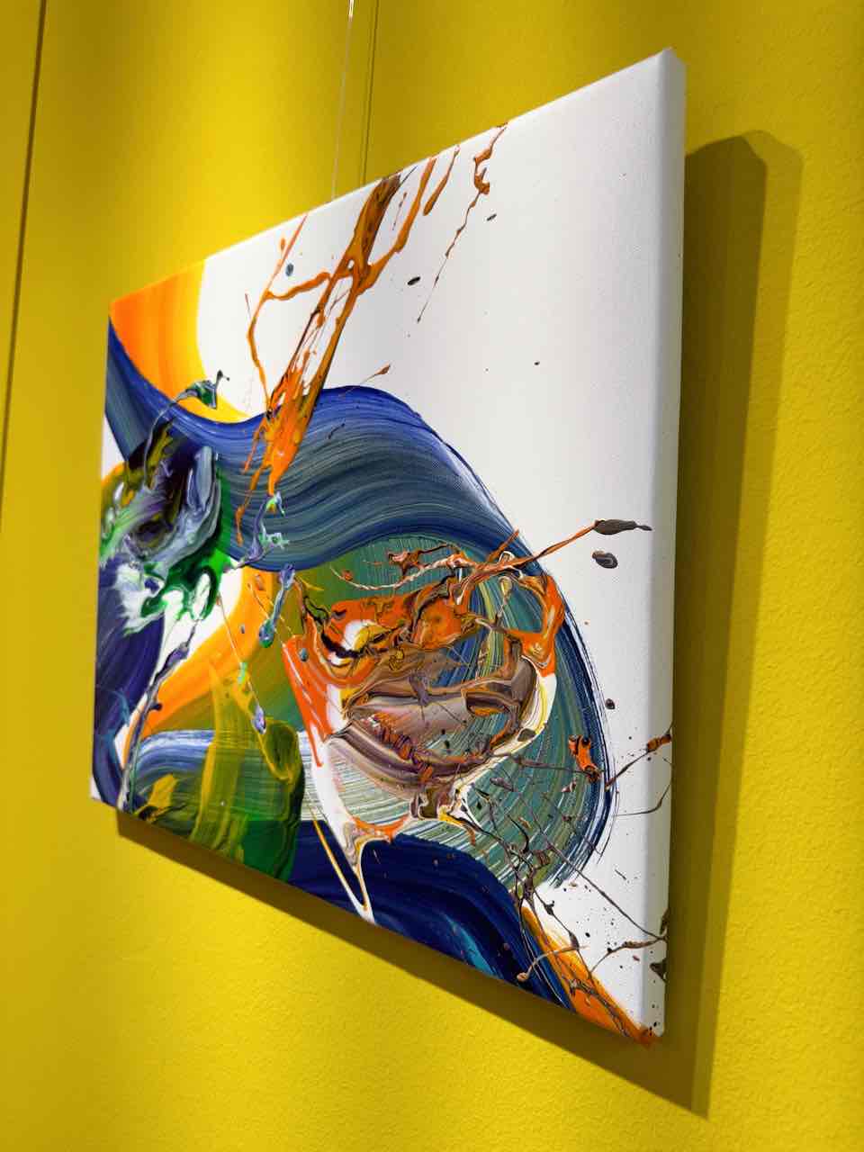 Kunst inspiriert von Natur: dieses Kunstwerk „Algarve“ präsentiert sich mit einem sanften Schwung, in dem die warmen Orangetöne harmonisch mit kühlen Blautönen verschmelzen. Diese geschmeidige Farbmischung vermittelt ein Gefühl von Leichtigkeit und Bewegung, während die lebhaften Spritzer in Grün und Weiß lebendige Akzente setzen. Das Zusammenspiel der Farben erzeugt eine dynamische Atmosphäre, die an die unberührte Schönheit der Algarve erinnert. Kunst inspiriert von Natur – die weichen Übergänge und lebhaften Spritzer laden dazu ein, die Energie und Frische der Komposition zu erfassen und die Verbindung zwischen Natur und Emotion zu erleben.