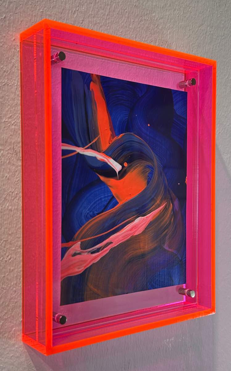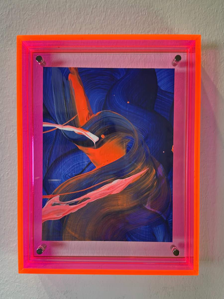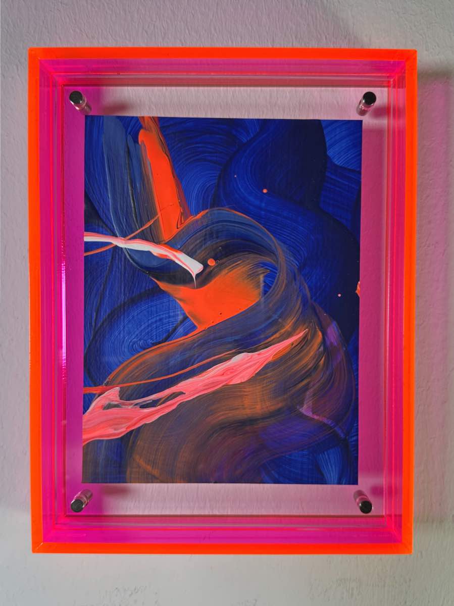 Acryl auf Papier in Acrylrahmen fluoreszierendes pink / orange