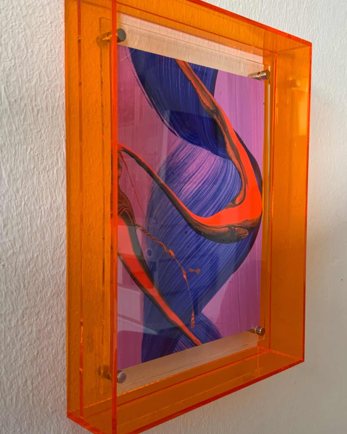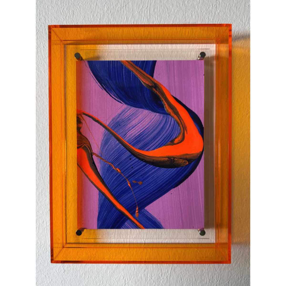 Acryl auf Papier in orangen Acrylrahmen