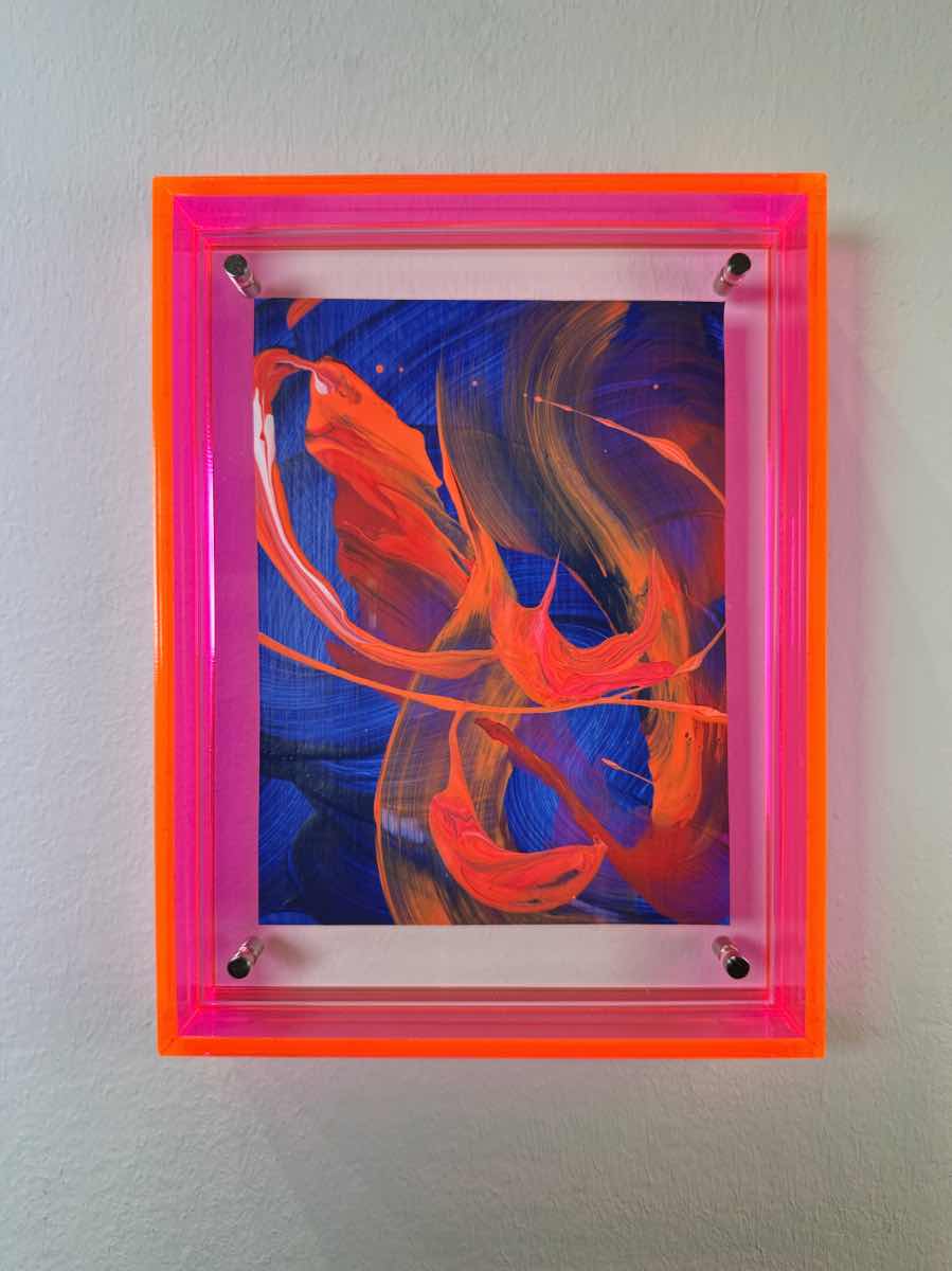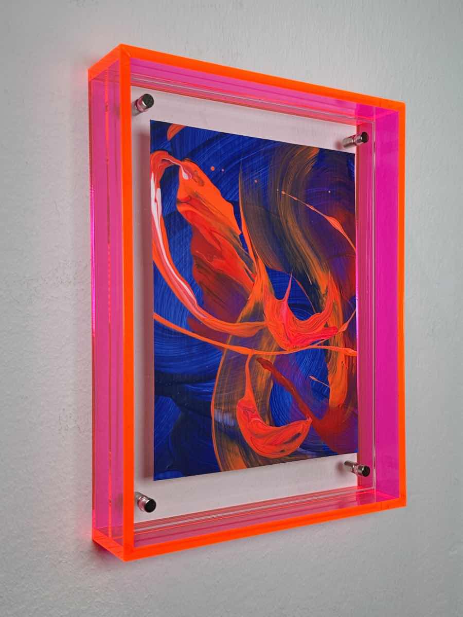 Acryl auf Papier in Acrylrahmen fluoreszierendes pink / Blau