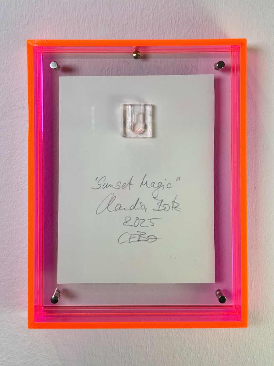 „Sunset Magic“ Traumhafte Mini Kunst pink blau und orange mit leuchtendem Acrylrahmen in Pink. Die fliessende Bewegung überträgt pure Energie an Ihre Wand – jetzt direkt online kaufen.